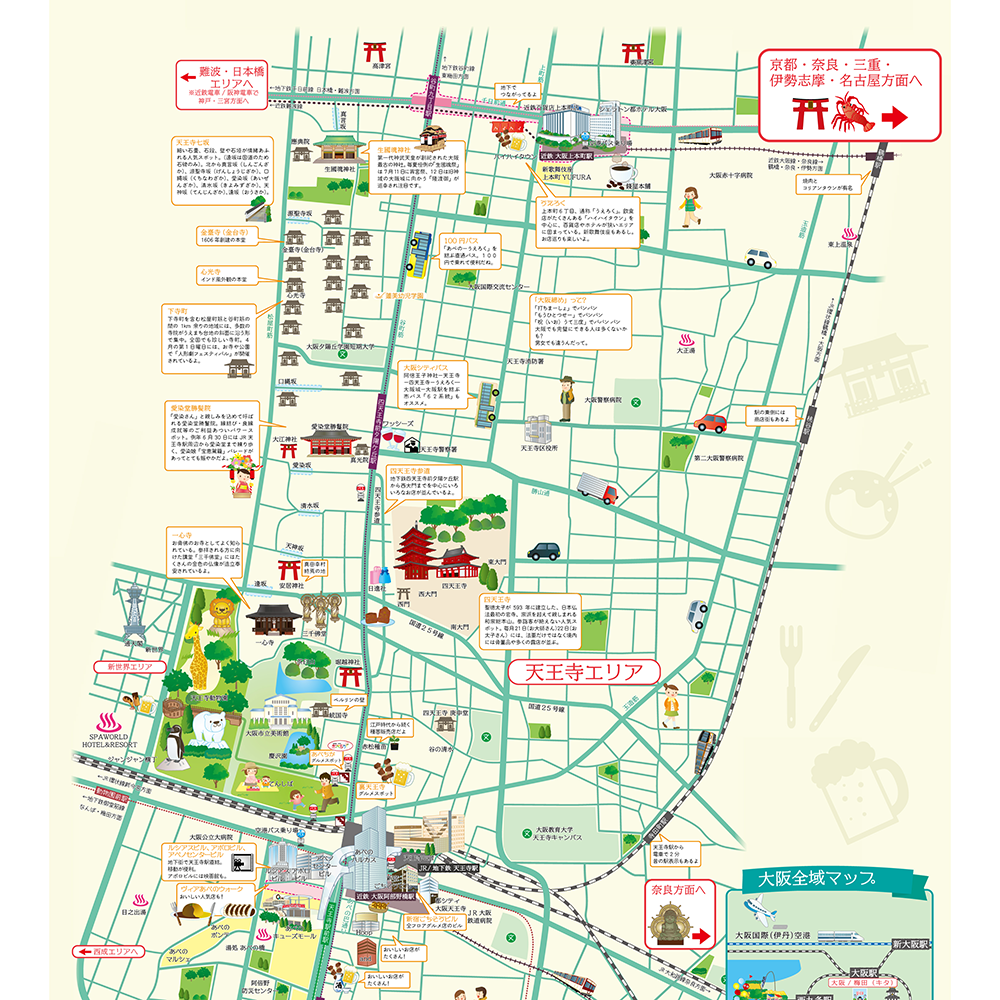 イベント会場マップや観光マップなどシンプルなものからイラストが入った賑やかなものまでご希望のテイストに合わせて制作いたします。他サンプルはこのページの下にたくさん掲載しておりますのでご参考になさってください。